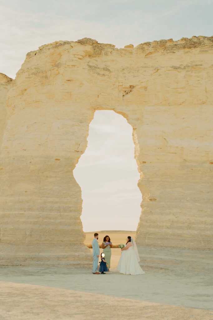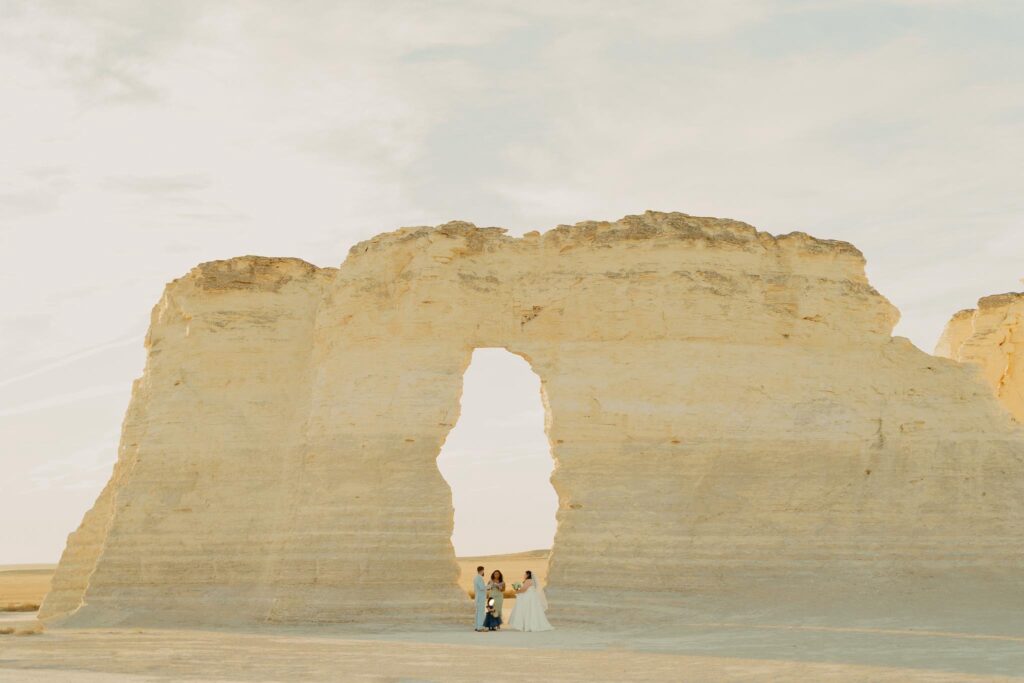 Monument Rocks is a scenic and secluded location, perfect for intimate ceremonies. Its towering chalk formations and wide-open prairie views make it ideal for couples who love nature, adventure, and iconic landscapes.